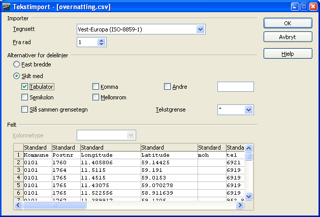 for konvertering til andre .csv format, bruk excel, OpenOffice.org Calc, ...